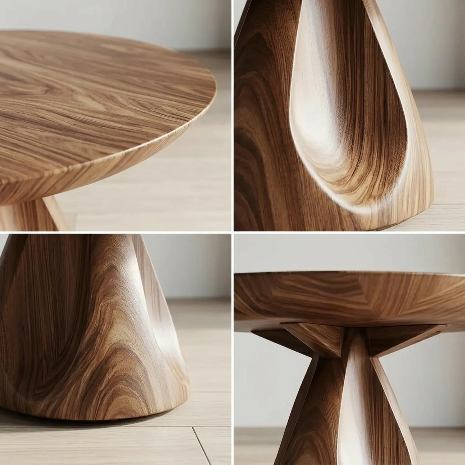 Crafted from solid wood, the table highlights smooth textures and warm tones that add comfort without overpowering the space. Its rounded shape is ideal for both small and open living areas.