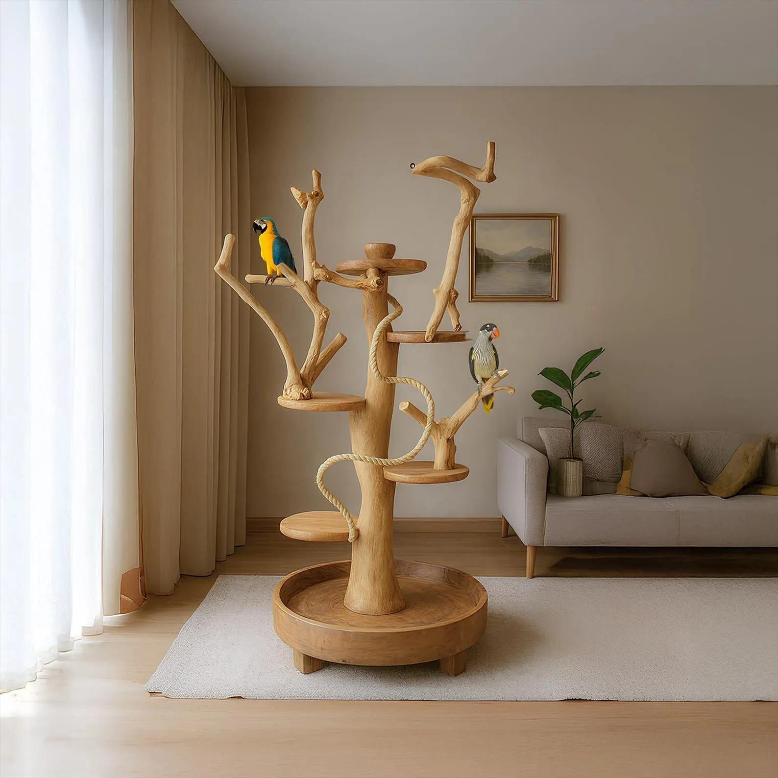 Use the stand in an indoor bird area or living room corner so your parrot has a safe spot to spend time outside the cage. It is suitable for many breeds of similar size when used under supervision. Toys or small bowls can be added to the branches to create extra interest. The handcrafted look also makes the stand an attractive piece of home decor.