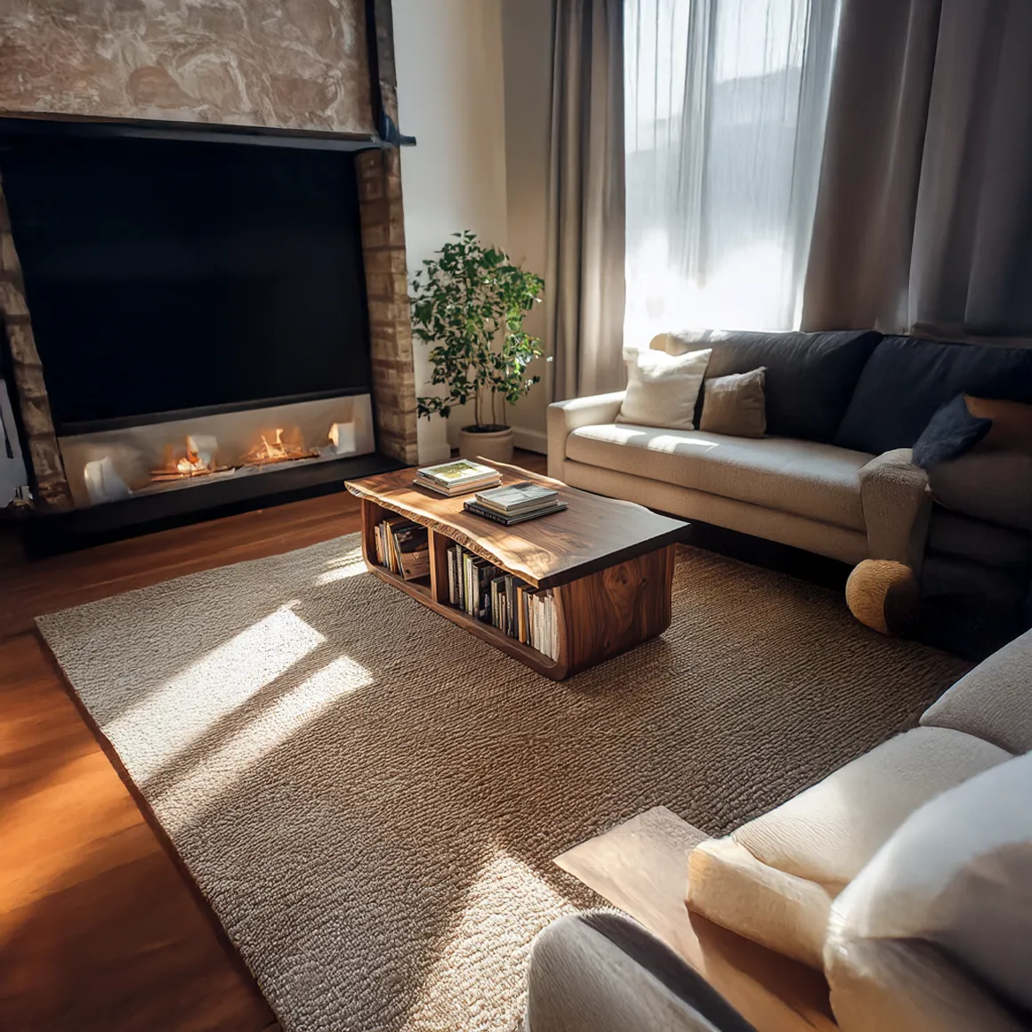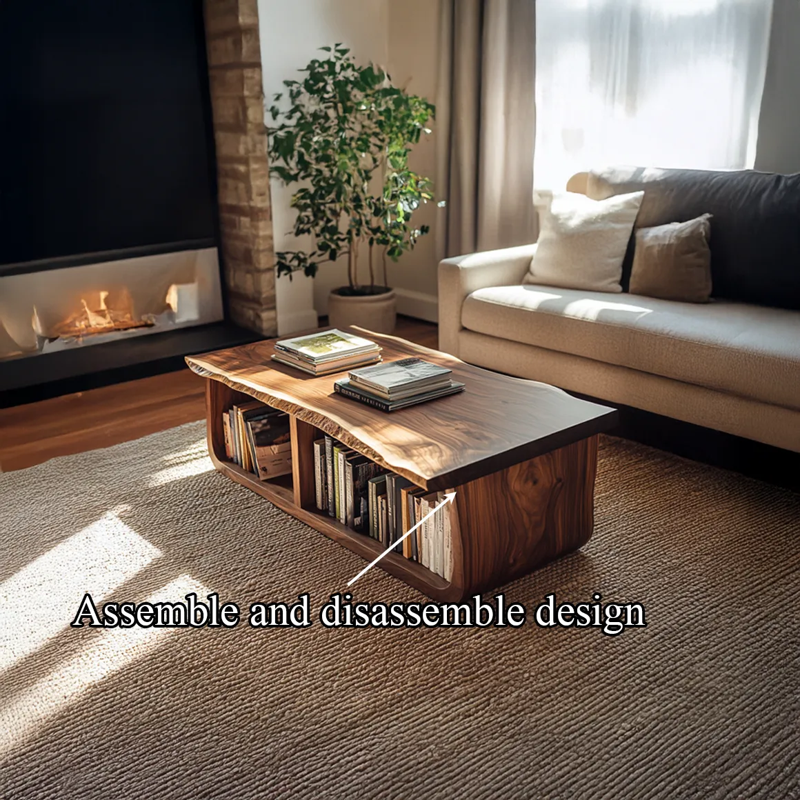 Mid Century Curved Live Edge Coffee Table Living Room