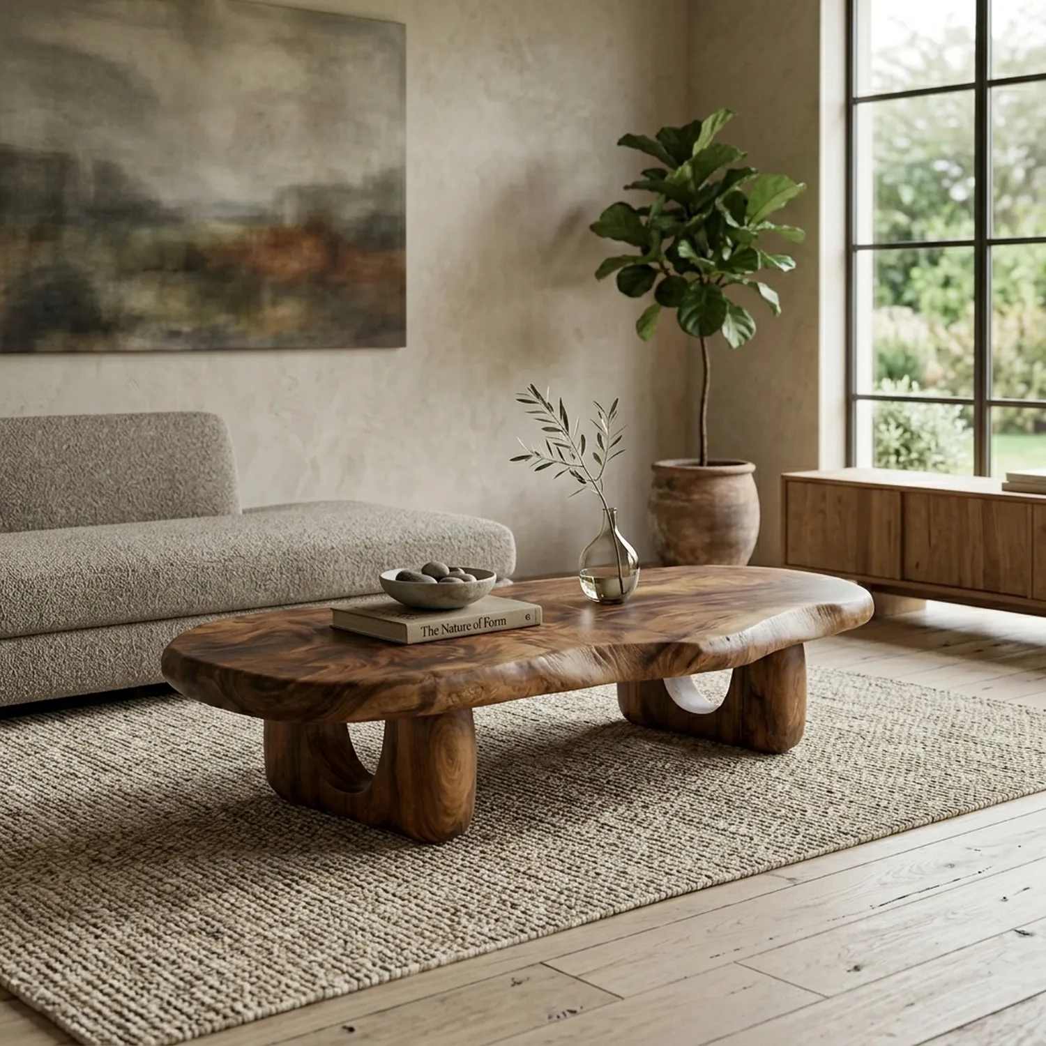 Perfect for modern, transitional, or minimalist interiors, this table brings warmth and texture without visual clutter. A versatile piece that blends natural design with modern living.