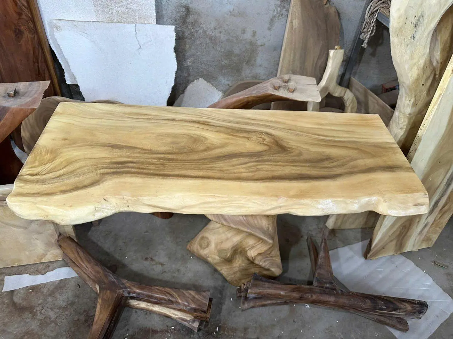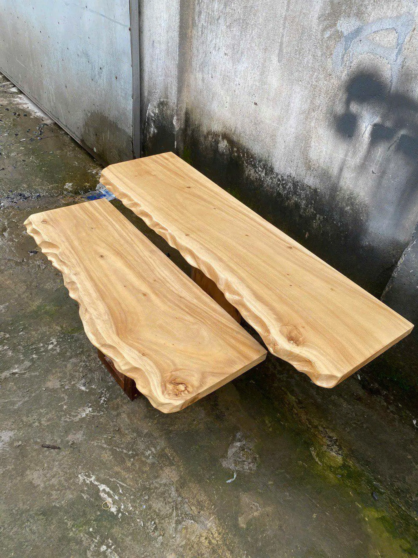 This rustic entryway bench provides a place to sit and store shoes near the door. The solid timber construction features a flat seat and open lower shelf, giving room for several pairs of footwear or woven storage baskets. Natural grain patterns and slightly textured surfaces give the bench a warm, relaxed look suitable for hallways and mudrooms.
